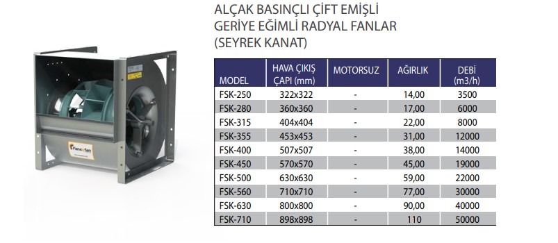 ALÇAK BASINÇLI ÇİFT EMİŞLİ GERİYE EĞİMLİ RADYAL