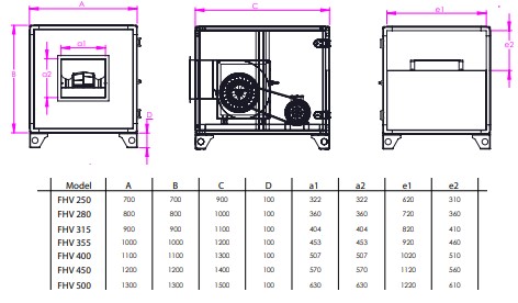 MALZEME: Kasası 0,70 mm ile 1 mm arasında galvaniz sacdan üretilir. Çift cidar olarak arasına 20 mm kalınlığında cam yünü doldurulmuştur. İskeleti alüminyum profilden olup köşeler plastiktir. Motor ve fan şase üzerinde kayış kasnak tahriki ile çalışmaktadır. Titreşim önleyici lastik takozlar bulunup özel contalarla sızdırmazlık sağlanmıştır. Atış ağzı bağlantısı konnektör ile bağlanmıştır.