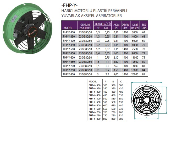 STOK KODU: FHP-Y -  KATEGORİLER: Aksiyel Aspiratörler