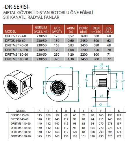 METAL GÖVDELİ DIŞTAN ROTORLU ÖNE EĞİMLİ SIK KANATLI RADYAL FANLAR