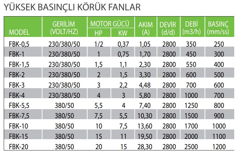 YÜKSEK BASINÇLI KÖRÜK FANLAR