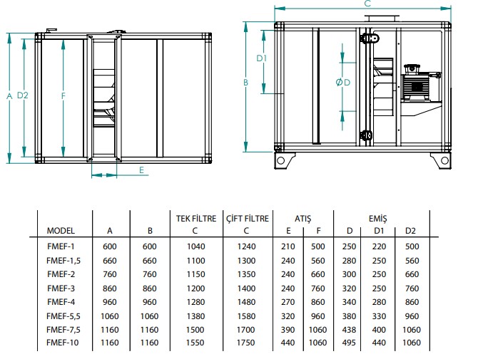 MALZEME: Kasası 0,70 mm ile 1 mm arasında galvaniz sacdan üretilir. Çift cidar olarak arasına 20 mm kalınlığında cam yünü doldurulmuştur. İskeleti alüminyum profilden olup köşeler plastiktir. Motor ve fan şase üzerinde kayış kasnak tahriki ile çalışmaktadır. Titreşim önleyici lastik takozlar bulunup özel contalarla sızdırmazlık sağlanmıştır. Atış ağzı bağlantısı konnektör ile bağlanmıştır.